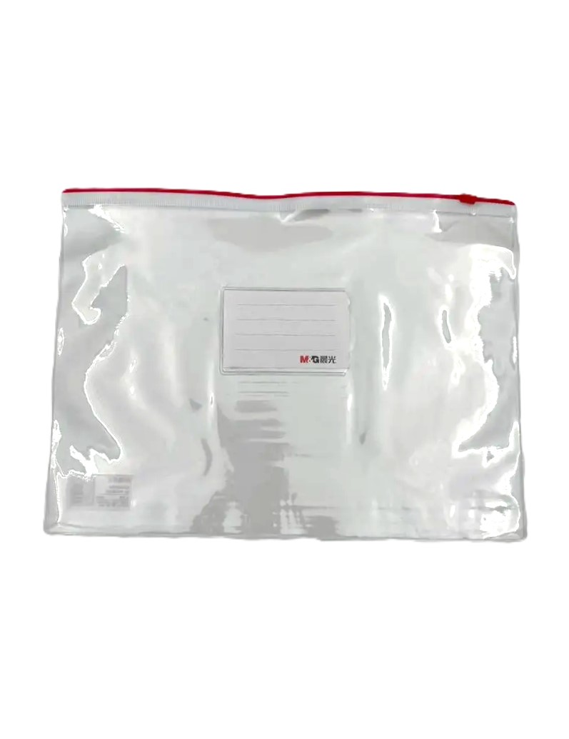 پوشه زیپ‌دار A4 شفاف قرمز (MG)