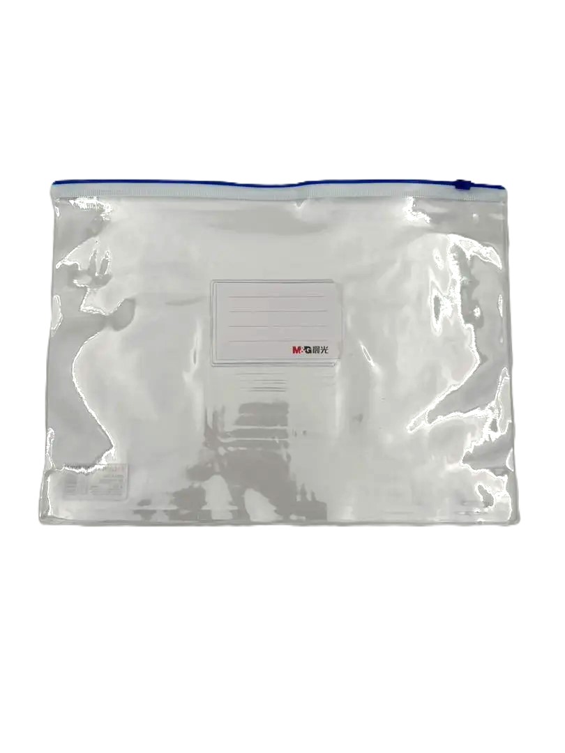 3. پوشه زیپ‌دار A4 شفاف آبی (MG)