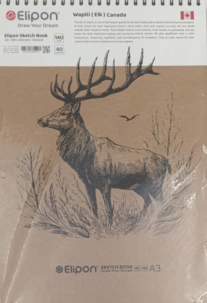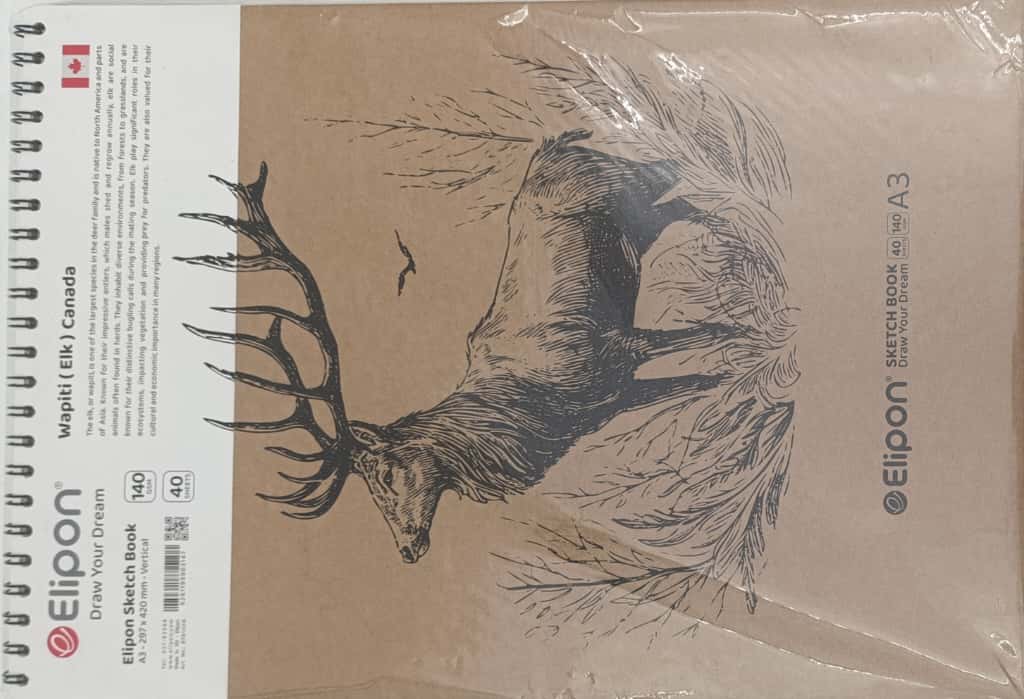 دفتراسکچ 40 برگ A3 سیمی جلدسخت (الیپون) گوزن