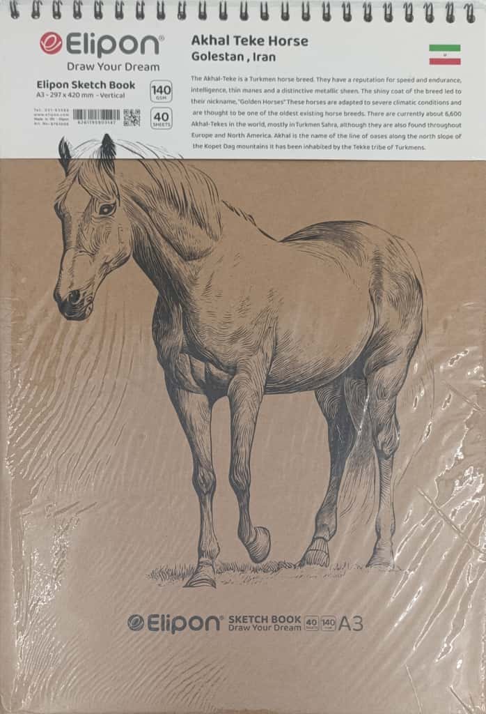 دفتراسکچ 40 برگ A3 سیمی جلدسخت (الیپون) اسب