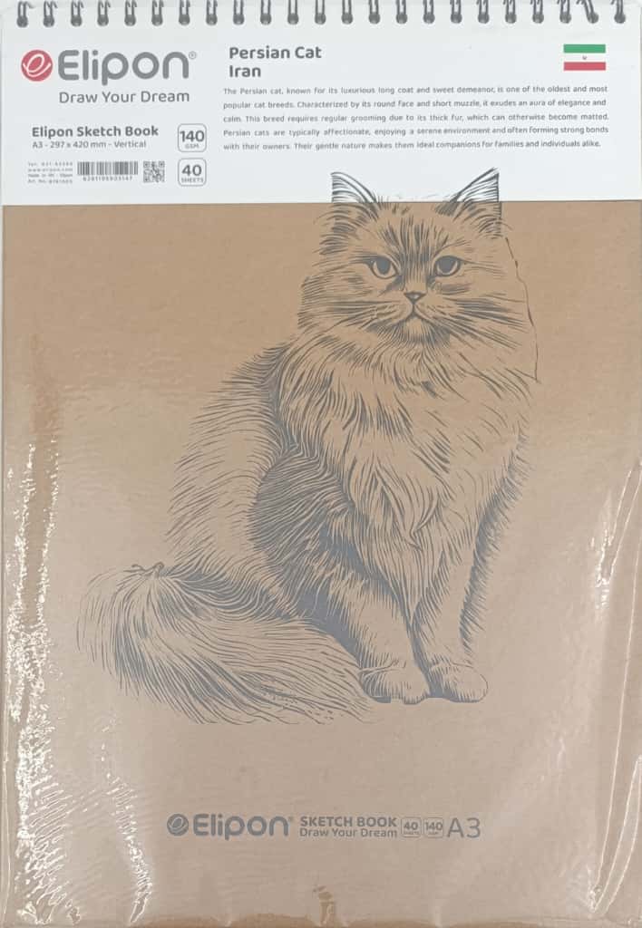 دفتراسکچ 40 برگ A3 سیمی جلدسخت (الیپون) گربه