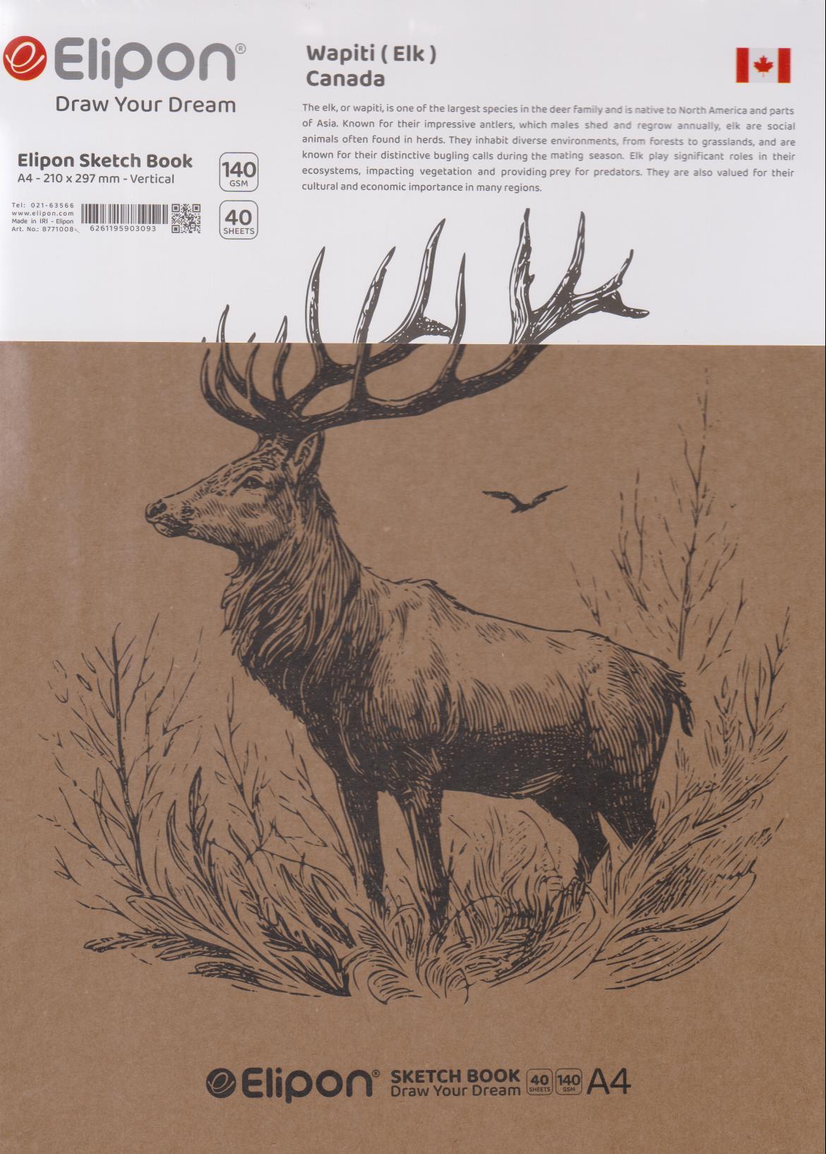 دفتراسکچ 40 برگ A4 سیمی جلدسخت (الیپون) گوزن