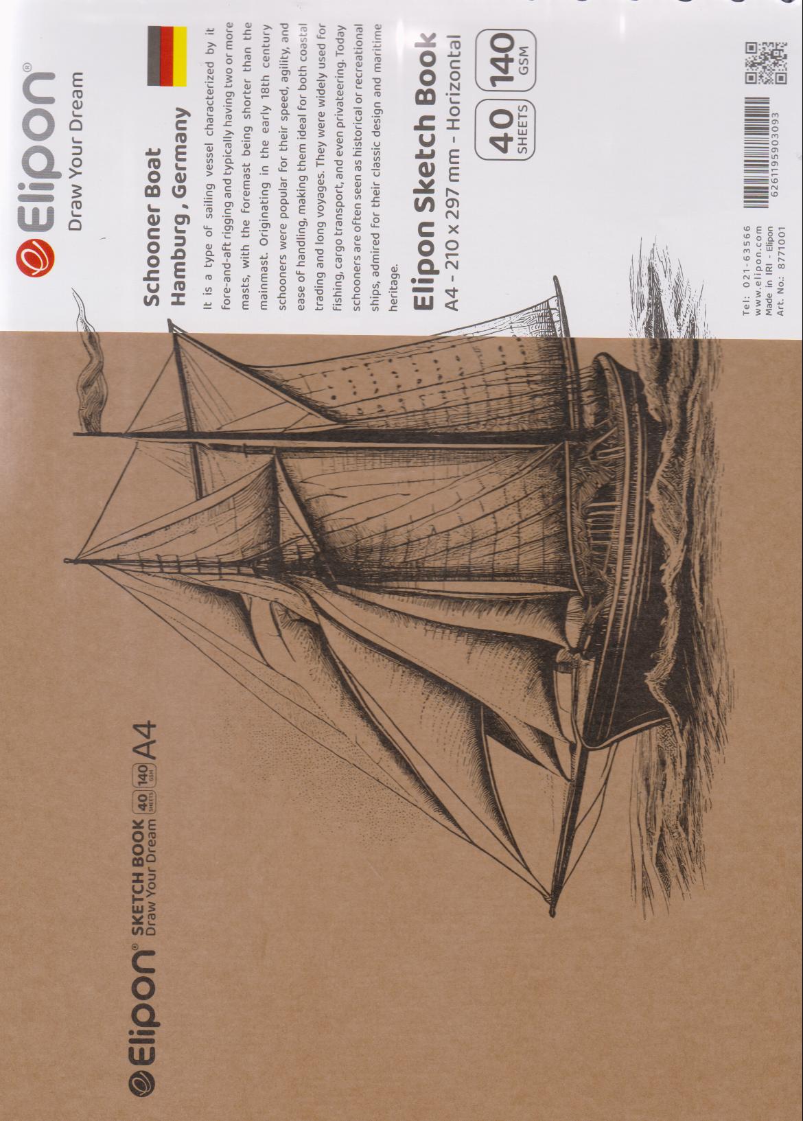 دفتراسکچ 40 برگ A4 سیمی جلدسخت (الیپون) قایق