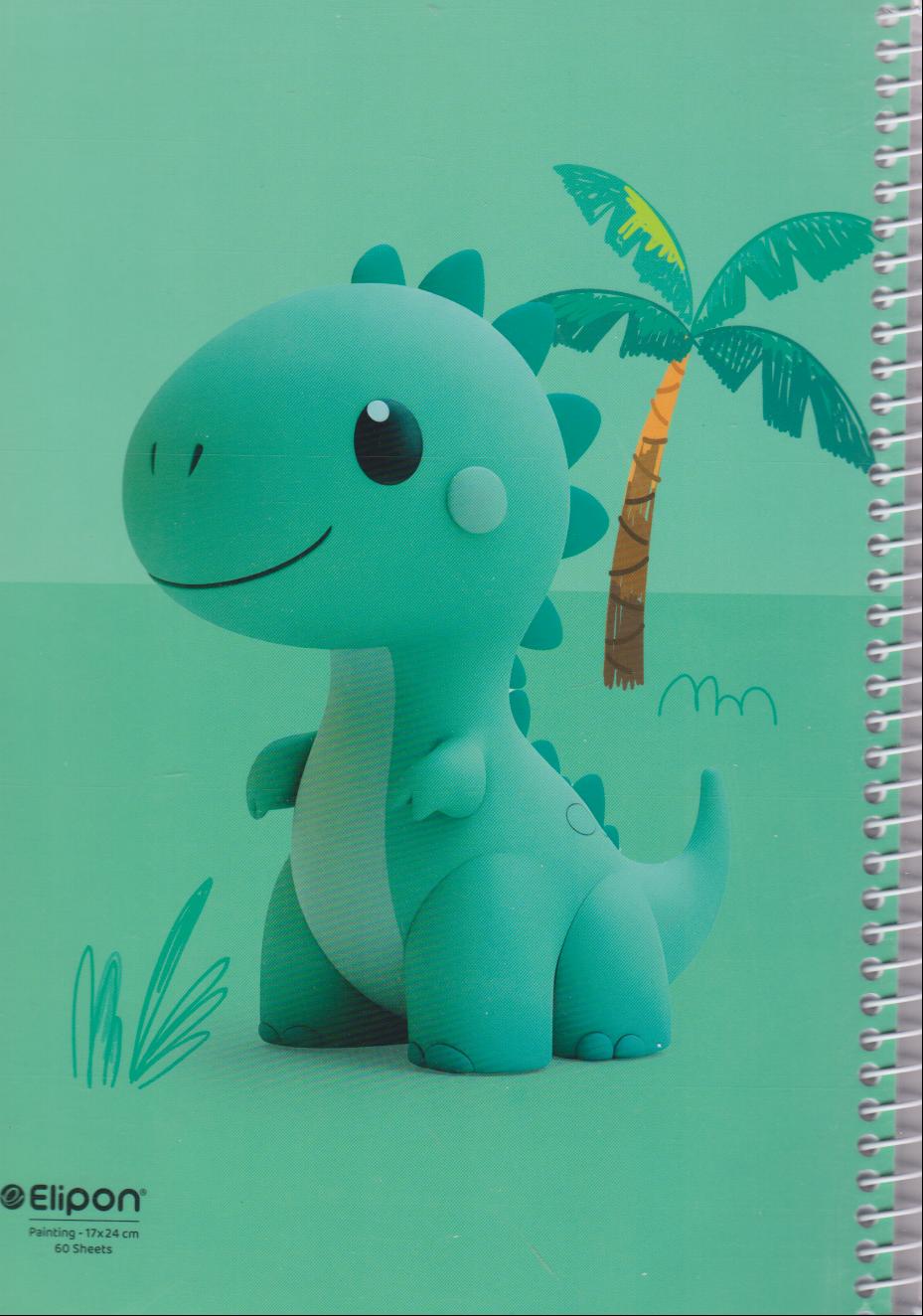 3. دفتر 60 برگ نقاشی وزیری سیمی جلد‌نرم فانتزی (الیپون) دایناسور