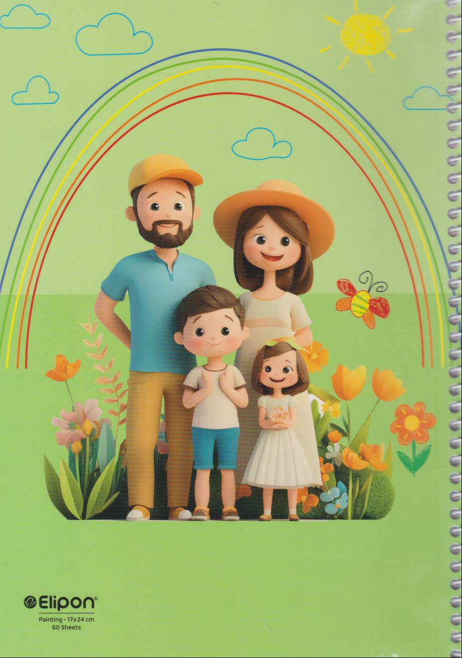 دفتر 60 برگ نقاشی وزیری سیمی جلد‌نرم فانتزی (الیپون) خانواده