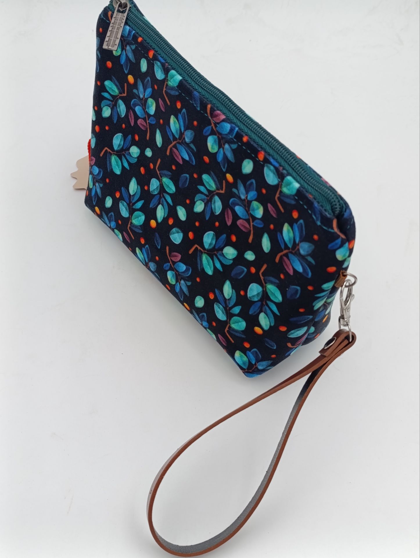 کیف لوازم بندچرمی (انار چاپ) آبیتیره طرحدار
