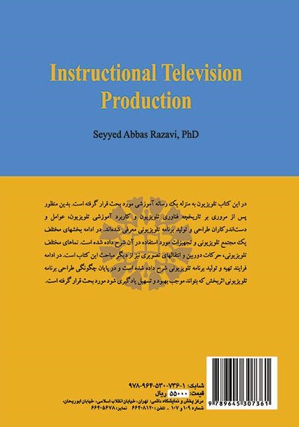 در این کتاب تلویزیون به منزله یک رسانه آموزشی مورد بحث قرار گرفته است. بدین منظور پس از مروری بر تاریخچه فناوری تلویزیون و کاربرد آموزشی تلویزیون، عوامل و دستاندرکاران طراحی و تولید برنامه تلویزیونی معرفی شدهاند. در ادامه بخشهای مختلف یک مجتمع تلویزیونی و تجهیزات مورد استفاده در آن شرح داده شده است. نماهای مختلف تلویزیونی، حرکات دوربین و انتقالهای تصویری نیز از دیگر مباحث این کتاب است. در ادامه فرایند تهیه و تولید برنامه تلویزیونی شرح داده شده است و در پایان چگونگی طراحی برنامه تلویزیونی اثربخش که بتواند موجب بهبود و تسهیل یادگیری شود مورد بحث قرار گرفته است.