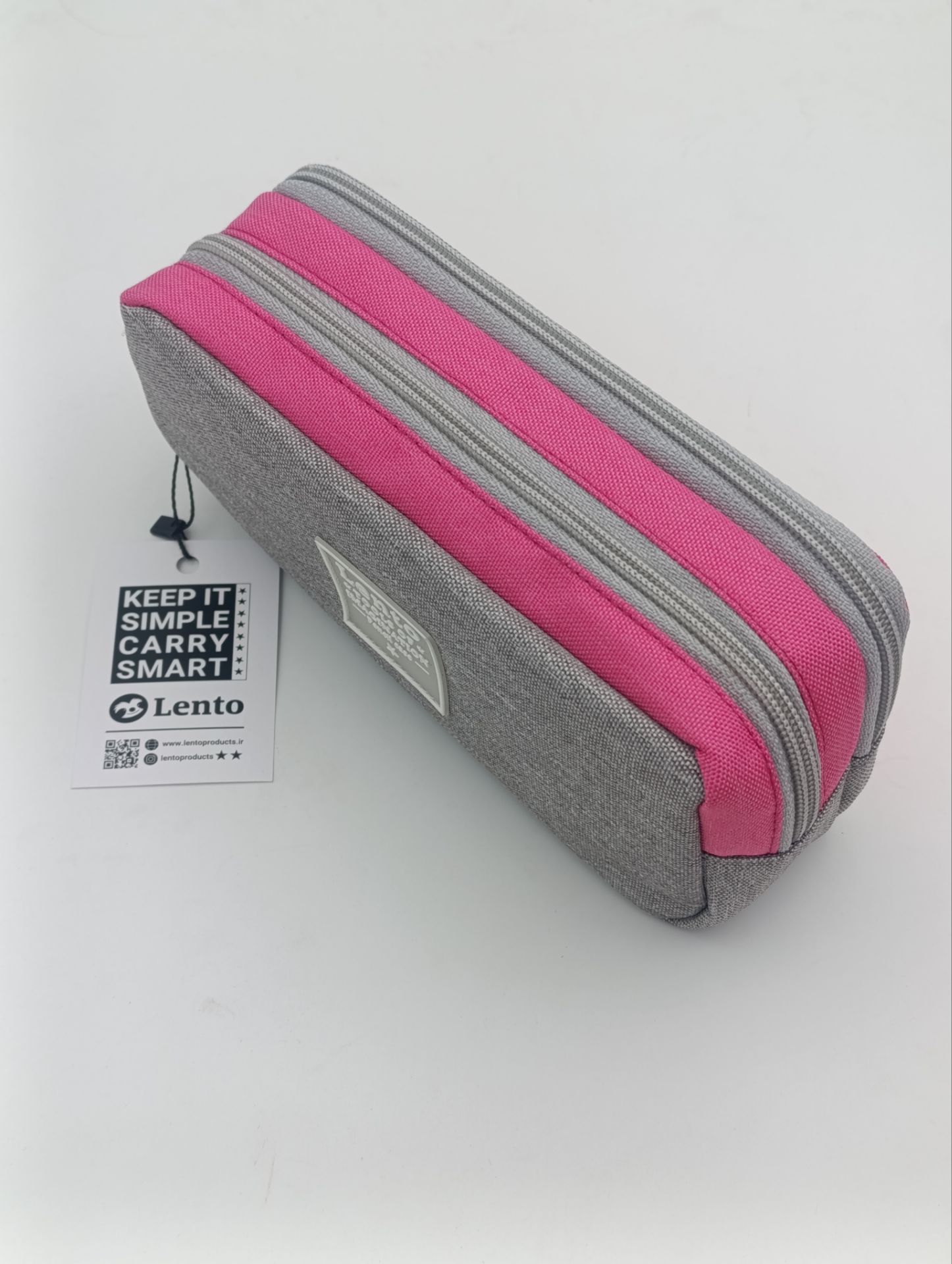 دسته بندی های جامدادی پارچهای ملانژ 2 زیپ (لنتو) طوسیصورتی