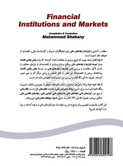 مطالعه و آشنایی با بازارها و نهادهای مالی برای تحلیلگران، مدیران و کارشناسان مالی و اقتصادی از دو بعد حائز اهمیت است: از بعد کلان؛ بدان جهت که نتایج بسیاری از مطالعات اثبات کردهاند که رشد بخش واقعی اقتصاد بدون توسعه بازارها و نهادهای مالی ممکن نیست، بسیاری از اقتصاددانان از زوایای مختلف، با شدت تأکید متفاوت، به بررسی نقش بازارها و نهادهای مالی در توسعه بخش واقعی اقتصاد پرداختهاند. برخی از اقتصاددانان این نقش را قابل اغماض و برخی دیگر آن را مهم تصور کردهاند. فصول «1» الی «3» کتاب به بررسی این موضوعات اختصاص داده شده است. از بعد خرد؛ تهیه برنامه راهبردی صحیح بر مبنای متغیرهای محیطی از مهمترین وظایف مدیریت بنگاه اقتصادی است. برای تدوین برنامه راهبردی مالی، شناخت نظام مالی لازم است. نظام مالی از پنج جزء ابزارهای مالی، نهادهای مالی، بازارهای مالی، قوانین مالی و نهادهای نظارتی مالی تشکیل میشود. فصول «4» الی «13» کتاب به معرفی «اجزاء پنجگانه نظام مالی» میپردازد. این کتاب چارچوب مفهومی برای پاسخ به این پرسشهاست: چرا بازارهای مالی به وجود آمدهاند و چرا ما به آنها نیاز داریم؟