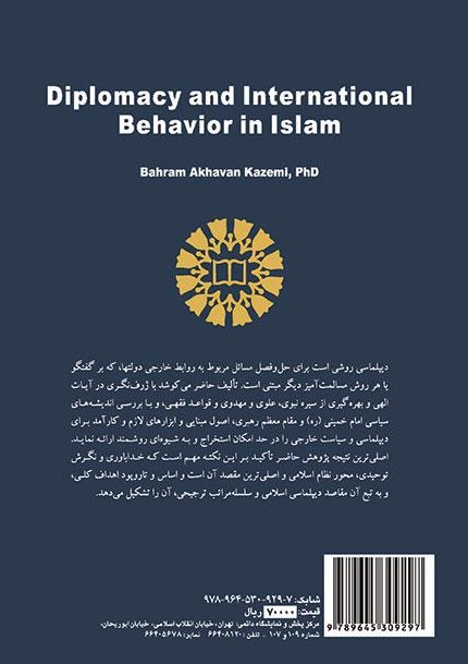دیپلماسی روشی است برای حلوفصل مسائل مربوط به روابط خارجی دولتها، که بر گفتگو یا هر روش مسالمتآمیز دیگر مبتنی است. تألیف حاضر میکوشد با ژرفنگری در آیات الهی و بهرهگیری از سیره نبوی، علوی و مهدوی و قواعد فقهی، و با بررسی اندیشههای سیاسی امام خمینی (ره) و مقام معظم رهبری، اصول مبنایی و ابزارهای لازم و کارآمد برای دیپلماسی و سیاست خارجی را در حد امکان استخراج و به شیوهای روشمند ارائه نماید. اصلیترین نتیجه پژوهش حاضر تأکید بر این نکته مهم است که خداباوری و نگرش توحیدی، محور نظام اسلامی و اصلیترین مقصد آن است و اساس و تاروپود اهداف کلی، و به تبع آن مقاصد دیپلماسی اسلامی و سلسلهمراتب ترجیحی، آن را تشکیل میدهد.