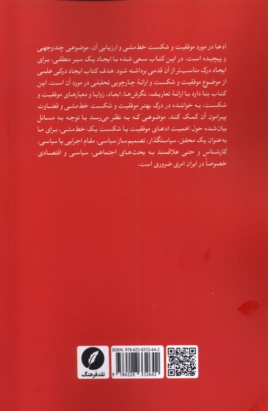 ادعا در مورد موفقیت و شکست خط مشی و ارزیابی آن، موضوعی چند وجهی و پیچیده است. در این کتاب سعی شده با ایجاد یک سیر منطقی، برای ایجاد درک مناسب تر از آن قدمی برداشته شود. هدف کتاب ایجاد درکی علمی از موضوع موفقیت و شکست و ارائه چارچوبی تحلیلی در مورد آن است. این کتاب بنا دارد با ارائه تعاریف، نگرش ها، ابعاد، زوایا و معیارهای موفقیت و شکست، به خواننده در درک بهتر موفقیت و شکست خط مشی و قضاوت پیرامون آن کمک کند.