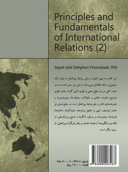 این کتاب به تبیین اصول و مبانی روابط بینالملل به عنوان یک موضوع و رشته مطالعاتی میپردازد. از این رو، سعی شده است دو هدف کلی در دو سطح عملی و نظری تأمین گردد. هدف نظری توضیح ماهیت، مفاهیم و مقولات، رهیافتها، پیشفرضها و مفروضههای دانش و علم روابط بینالملل است. در سطح عملی نیز هدف توصیف، تبیین و تحلیل پدیدهها، سازوکارها، ساختارها، فرایندها، موضوعات و مسائل، الگوها و نتایج بینالمللی، از یک سو و انگیزهها، آرمانها، اهداف و رفتار بازیگران بینالمللی، از سوی دیگر است.