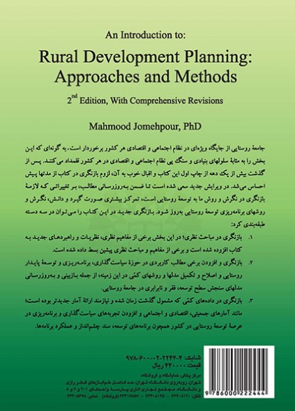 کتاب حاضر برای دانشجویان رشته علوم اجتماعی (گرایش برنامهریزی اجتماعی) در مقطع کارشناسی به عنوان منبع اصلی درس «برنامهریزی روستایی» به ارزش 3 واحد تدوین شده است. ضمنا این کتاب برای دانشجویان رشتههای جغرافیا، برنامهریزی توسعه منطقهای، شهری منطقهای، رفاه اجتماعی و نیز درسهای «جامعهشناسی روستایی»، «مردمشناسی روستایی» و «جامعهشناسی توسعه» در مقاطع کارشناسی و کارشناسی ارشد قابل استفاده است. امید است علاوه بر جامعه دانشگاهی، سایر علاقهمندان نیز از آن بهرهمند شوند.