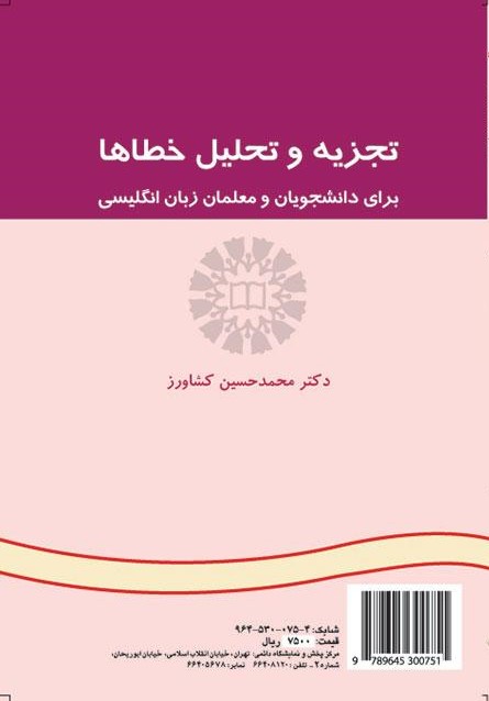 آموختن و در پی آن زبانآموزی فرایندی خطاپذیر است و در واقع خطا کردن جزء ضروری و ناگزیر فرایند یادگیری است. بسیاری از محققان بر اهمیت خطاهای فراگیران زبان دوم تأکید میکنند و معتقدند این خطاها فرصتی برای معلمان است تا با تحلیل آنها مشکلات زبانآموزان را بشناسند و آنان را در رفع آن یاری نمایند. کتاب حاضر با هدف تجزیه و تحلیل خطاها، طی هفت فصل بر آن است با مروری بر تاریخچه و تبیین مفاهیم کلیدی مربوطه، اطلاعاتی را در زمینۀ فرضیههای تحلیل، روشهای جمعآوری دادهها و روششناسی تفسیر، طبقهبندی و تحلیل روانشناسی زبانی خطاها و نیز نقش مهارتهای ارتباطی دراختیار دانشجویان و معلمان زبان انگلیسی قرار دهد.