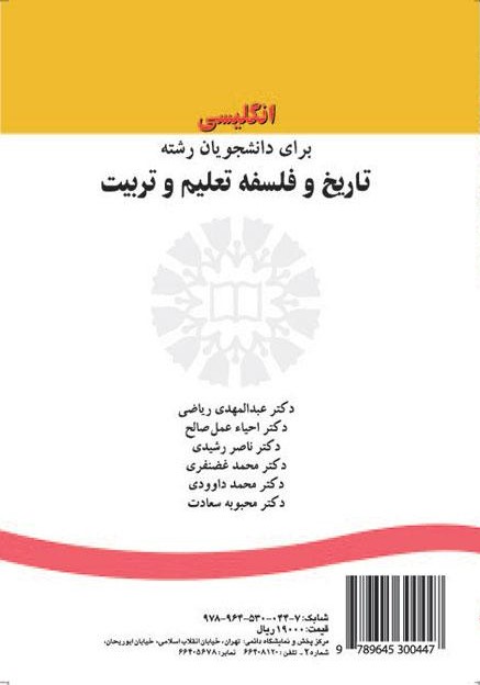 این کتاب برای دانشجویان رشته تاریخ و فلسفه تعلیم و تربیت در مقطع کارشناسی ارشد به عنوان منبع اصلی درس زبان تخصصی به ارزش 2 واحد تدوین شده است.