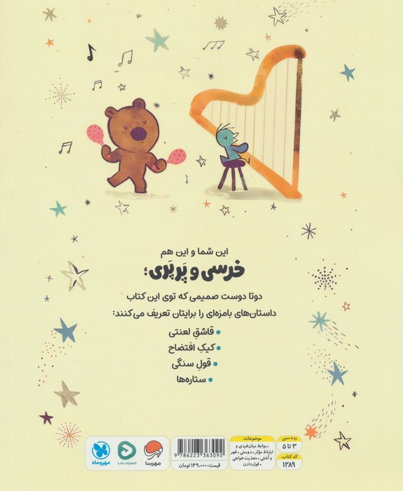 خرسی و پرپری بهترین دوستان هم هستند، اما دیروز با هم دعوا کردند. و بااینکه هیچکدام یادشان نیست سر چه چیزی بوده، هر دو مطمئناند که باید یک دوست جدید پیدا کنند. اگر خرسی نامهای ناشناس را روی آب رها کند، آیا کسی آن را پیدا میکند؟ کسی که به اندازهی پرپری با او اشتراک داشته باشد؟ در این چهار داستان، این زوج دوستداشتنی بازمیگردند تا نشان دهند حتی دوستانی که گاهی سوءتفاهم پیدا میکنند، میتوانند بهترین حامی هم باشند -چه در وقت قرار گذاشتنهایی که مضحکانه بههم میریزد، چه در پختن کیکهای غافلگیرکننده و افتضاح، و چه در زیر آسمان پرستاره، وقتی لحظهای آرام را با هم تقسیم میکنند (و آنقدر غرق آرزوهای "فقط یک چیز دیگر" میشوند که آرامش از دست میرود!). با شوخطبعی ظریف مخصوص خودش، تصویرگری جذاب و مهربانی زیرپوستی، جارویس خوانندگان تازهکار را وارد داستان دوستی شیرینی میکند که برای همیشه در خاطر میماند.