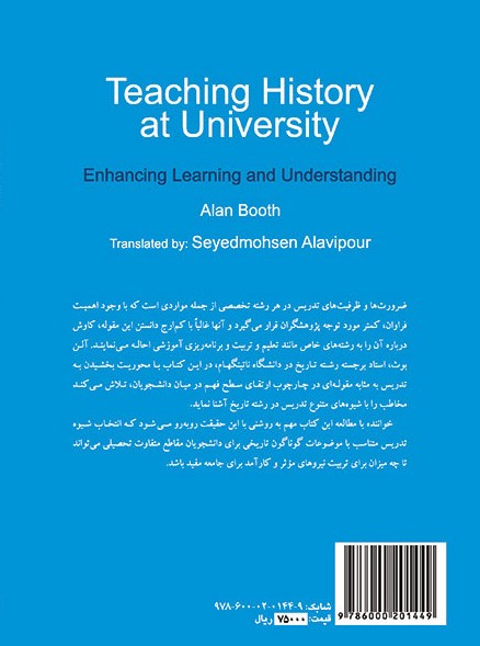 ضرورتها و ظرفیتهای تدریس در هر رشته تخصصی از جمله مواردی است که با وجود اهمیت فراوان، کمتر مورد توجه پژوهشگران قرار میگیرد و آنها غالبا با کمارج دانستن این مقوله، کاوش درباره آن را به رشتههای خاص مانند تعلیم و تربیت و برنامهریزی آموزشی احاله مینمایند. آلن بوث، استاد برجسته رشته تاریخ در دانشگاه ناتینگهام، در این کتاب با محوریت بخشیدن به تدریس به مثابه مقولهای در چارچوب ارتقای سطح فهم در میان دانشجویان، تلاش میکند مخاطب را با شیوههای متنوع تدریس در رشته تاریخ آشنا نماید. خواننده با مطالعه این کتاب مهم به روشنی با این حقیقت روبهرو می شود که انتخاب شیوه تدریس متناسب با موضوعات گوناگون تاریخی برای دانشجویان مقاطع متفاوت تحصیلی میتواند تا چه میزان برای تربیت نیروهای موثر و کارآمد برای جامعه مفید باشد.
