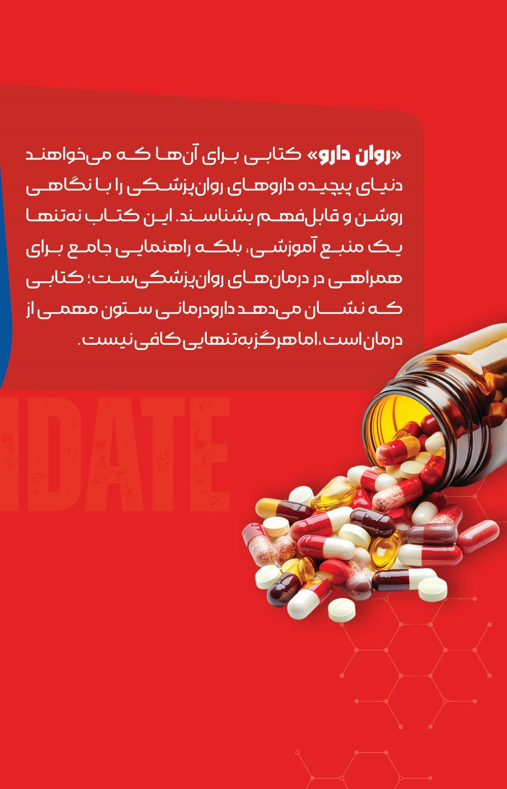 کتاب حاضر با عنوان روان دارو راهنمای جامع داروهای روانی، تلاشی است برای ارائه ی دانشی علمی منسجم و در عین حال ساده و قابل فهم درباره داروهای روان پزشکی هدف من این بوده است که پلی میان زبان تخصصی و زبان ایجاد کنم؛ پلی که دانشجویان روان شناسی و رشته های وابسته بتوانند از آن برای عمومی ایجاد شود.