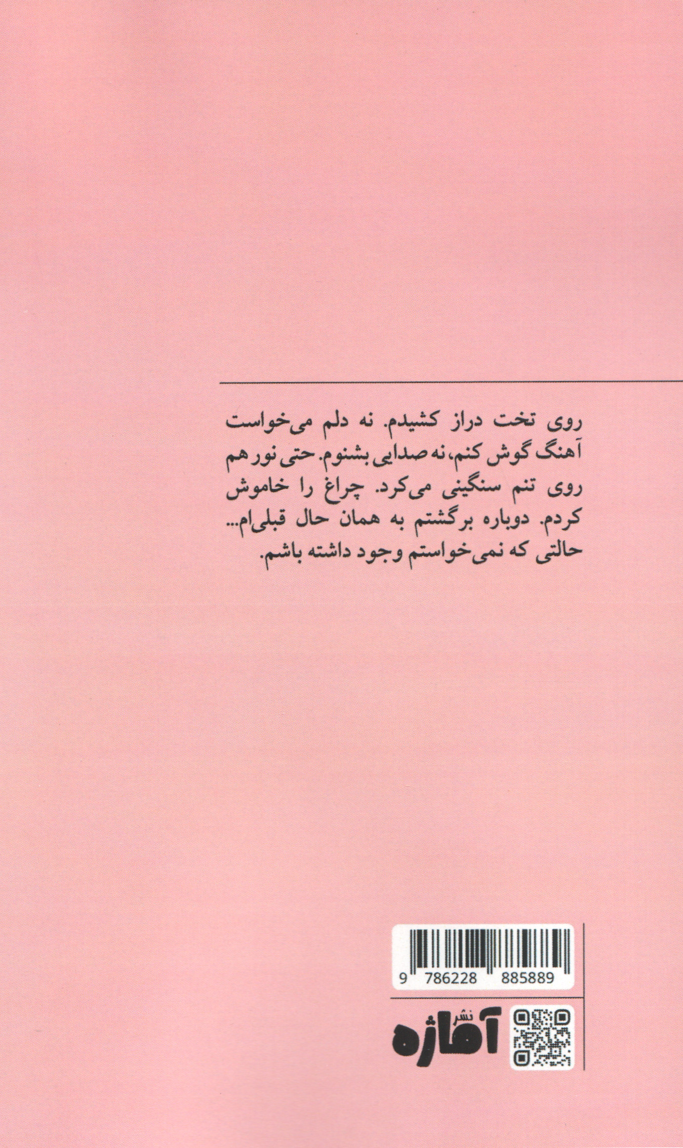 روی تخت دراز کشیدم. نه دلم میخواست آهنگ گوش کنم، نه صدایی بشنوم. حتی نور هم روی تنم سنگینی میکرد. چراغ را خاموش کردم. دوباره برگشتم به همان حال قبلیام... حالتی که نمیخواستم وجود داشته باشم.