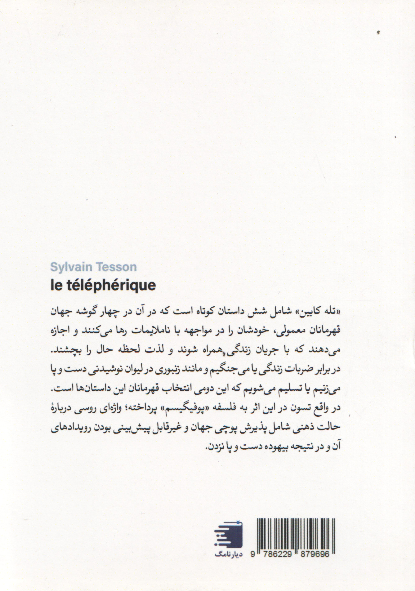 کتاب تلهکابین مجموعهای از شش داستان کوتاه است که در حدود 80 صفحه گردآوری شدهاند. این داستانها قهرمانهایی معمولی را در چهارگوشه جهان به تصویر میکشند. افرادی که در مقابله با سختیها و ناخوشیهای زندگی، راهی متفاوت را انتخاب میکنند. برخلاف بسیاری از روایتهای پر از تقلا و مقاومت، قهرمانان تسون ترجیح میدهند با جریان زندگی همراه شوند و به جای مبارزه مستقیم و خسته کننده با مشکلاتشان، از لحظات زندگی خود لذت ببرند.