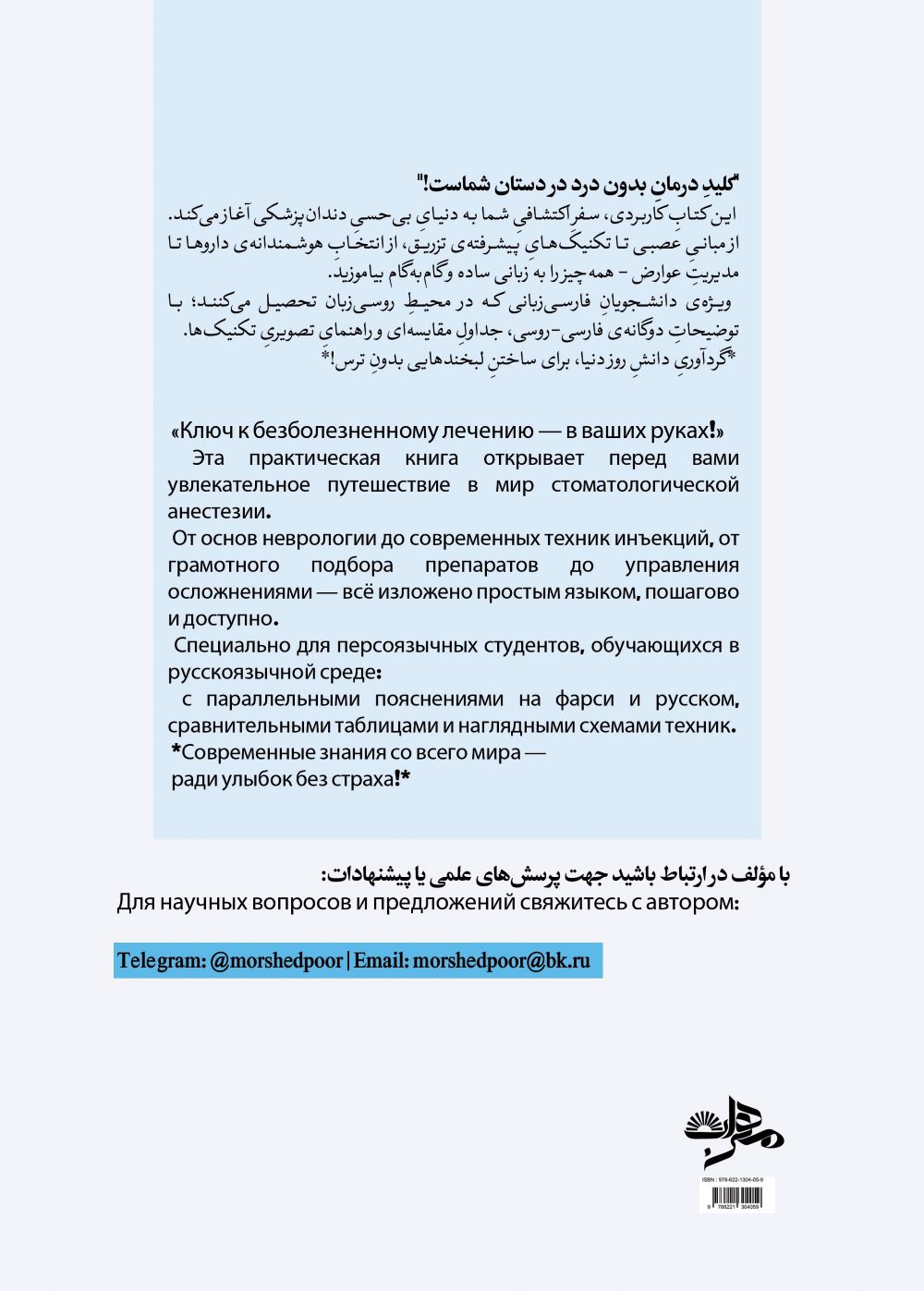 این کتاب، عصاره ی مسیر چالش برانگیز یادگیری بیحسی موضعی در محیطی غیرفارسی زبان (روسیه) است؛ حاصل ترکیب منابع معتبر جهانی، تجربیات بالینی و نیازهای ملموس دانشجویان فارسی زبان