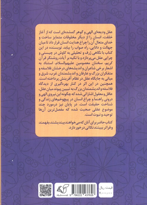 عقل و دیعهای الهی و گوهر گمشدهای است که از آغاز خلقت. انسان را از دیگر مخلوقات متمایز ساخت و خدای متعال آن را چراغ هدایت انسان قرار داد تا میان جهالت و دانایی، راه صواب را بیابد. نویسنده در این کتاب با نگاهی ژرف و تحلیلی به کاوش در چیستی و چرایی عقل میپردازد و با تکیه بر آیات روشنگر قرآن کریم، سخنان معصومین علیهم السلام، استناد به اشعار برخی شاعران و اندیشههای درخشان فلاسفه و متفکران بزرگ و عارفان و اندیشمندان غرب، شرق و میانی به جایگاه عقل در نظام آفرینش پرداخته است. همچنین در این اثر در کنار بهرهگیری از دیدگاه فلاسفه و اندیشمندان بزرگ به تبیین پیوند میان عقل، عاقل و معقول اشاراتی شده که چگونه این نیروی الهی و درونی راهنما و چراغ انسان در پیچ و خمهای زندگی و شناخت حقیقت است. در پایان نیز در مورد چند موضوع عقلی صحبت شده که مفصل ترین آنها توحید و نبوت است.