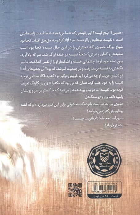 همین؟! پنج کیسه؟ این قیمتی که شما میدهید فقط قیمت زلفهایش است. نفیسه موهایش را از دست مرد آزاد کرد و به هق هق افتاد کجا بود شیخ بزرگ حمیری که دخترش را در این حال ببیند؟ کجا بود اسب سفیدش و کمان و تیرش؟ ضجه نفیسه در خنده او گم شد. سرکه بالا آورد.