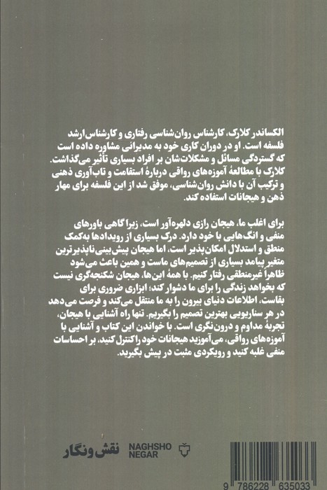 الکساندر کلارک، کارشناس روانشناسی رفتاری و کارشناسارشد فلسفه است. او در دوران کاری خود به مدیرانی مشاوره داده است که گستردگی مسائل و مشکلاتشان بر افراد بسیاری تأثیر میگذاشت. کلارک با مطالعۀ آموزههای رواقی دربارۀ استقامت و تابآوری ذهنی و ترکیب آن با دانش روانشناسی، موفق شد از این فلسفه برای مهار ذهن و هیجانات استفاده کند. برای اغلب ما، هیجان رازی دلهرهآور است، زیرا گاهی باورهای منفی و انگهایی با خود دارد. درک بسیاری از رویدادها بهکمک منطق و استدلال امکانپذیر است، اما هیجان پیشبینیناپذیرترین متغیر پیامد بسیاری از تصمیمهای ماست و همین باعث میشود ظاهرا غیرمنطقی رفتار کنیم. با همۀ اینها، هیجان شکنجهگری نیست که بخواهد زندگی را برای ما دشوار کند؛ ابزاری ضروری برای بقاست، اطلاعات دنیای بیرون را به ما منتقل میکند و فرصت میدهد در هر سناریویی بهترین تصمیم را بگیریم. تنها راه آشنایی با هیجان، تجربۀ مداوم و دروننگری است. با خواندن این کتاب و آشنایی با آموزههای رواقی، میآموزید هیجانات خود را کنترل کنید، بر احساسات منفی غلبه کنید و رویکردی مثبت در پیش بگیرید