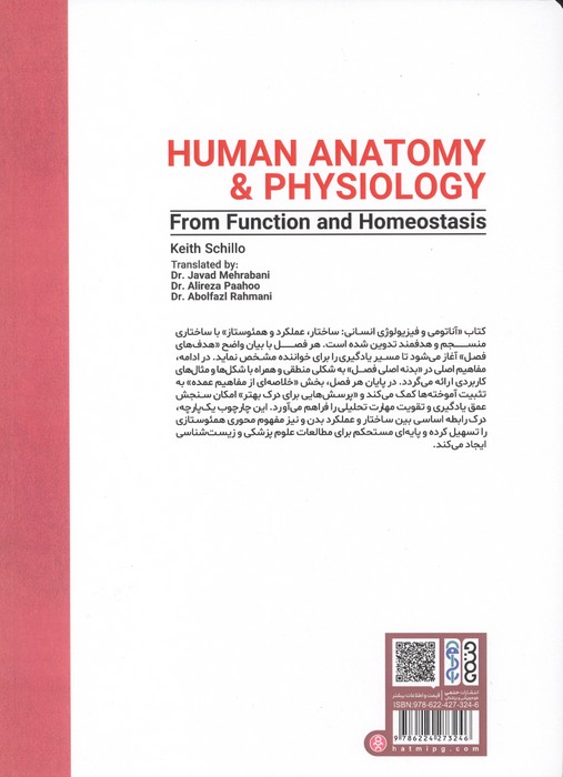کتاب آناتومی و فیزیولوژی انسانی (ساختار، عملکرد و همئوستاز) یک منبع جامع و کامل برای درک ساختار و عملکرد بدن انسان است. این کتاب با تصاویر رنگی، نمودارهای مفهومی و توضیحات مرحلهبهمرحله، مفاهیم را از سطح سلولی تا سیستمهای بزرگ توضیح میدهد. فصلها شامل بررسی دستگاههای عصبی، عضلانی، قلبی-عروقی، تنفسی، گوارشی و ادراری هستند و امکان درک علمی و کاربردی بدن را برای دانشجویان، پژوهشگران و علاقهمندان فراهم میکنند