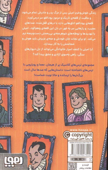 زندگی خوشوخرم امیلی پس از مرگ پدر و مادرش تمام میشود و عاقبت از قلعهی تاریک و مرموز یودلفو سر درمیآورد. قلعهی یودلفو اتاقهایی دارد با درهای قفلشده، صداهای عجیب، و رازهایی سر به مهر. در دل این قلعهی وهمآلود، امیلی با تهدیدها و توطئههای شوهرعمهی بیرحمش دستوپنجه نرم میکند. او برای نجات جان خودش و عمهی عزیزش باید هوش و شجاعتش را به کار بیندازد. آیا امیلی با کشف اسرار خانوادگی میتواند از دل دیوارهای سنگی، راهی بهسوی آزادی و عشق پیدا کند؟ مجموعهی ترسهای کلاسیک پر از هیجان، معما و رویارویی با ترسهای ناشناخته است؛ داستانهایی که صدها سال است بزرگترها را ترسانده! حالا نوبت شماست!