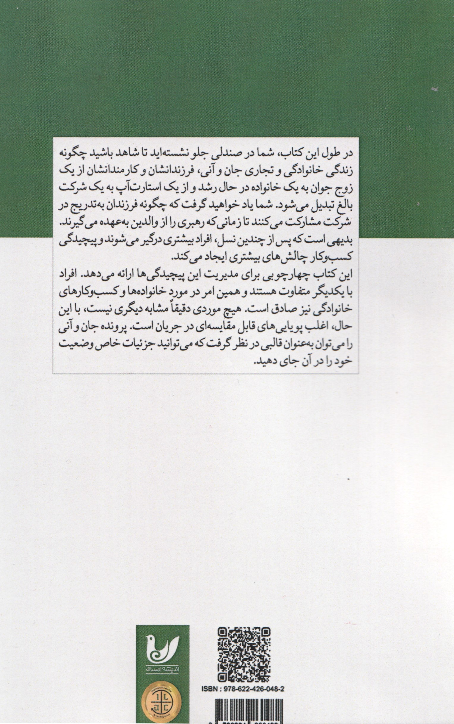 در طول این کتاب، شما در صندلی جلو نشستهاید تا شاهد باشید چگونه زندگی خانوادگی و تجاری جان و آنی، فرزندانشان و کارمندانشان از یک زوج جوان به یک خانواده در حال رشد و از یک استارتآپ به یک شرکت بالغ تبدیل میشود. شما یاد خواهید گرفت که چگونه فرزندان بهتدریج در شرکت مشارکت میکنند تا زمانی که رهبری را از والدین بهعهده میگیرند. بدیهی است که پس از چندین نسل، افراد بیشتری درگیر میشوند و پیچیدگی کسبوکار چالشهای بیشتری ایجاد میکند. این کتاب چارچوبی برای مدیریت این پیچیدگیها ارائه میدهد. افراد با یکدیگر متفاوت هستند و همینامر در مورد خانوادهها و کسبوکارهای خانوادگی نیز صادق است. هیچ موردی دقیقا مشابه دیگری نیست، با این حال، اغلب پویاییهای قابل مقایسهای در جریان است. پرونده جان و آنی را میتوان بهعنوان قالبی در نظر گرفت که میتوانید جزئیات خاص وضعیت خود را در آن جای دهید.