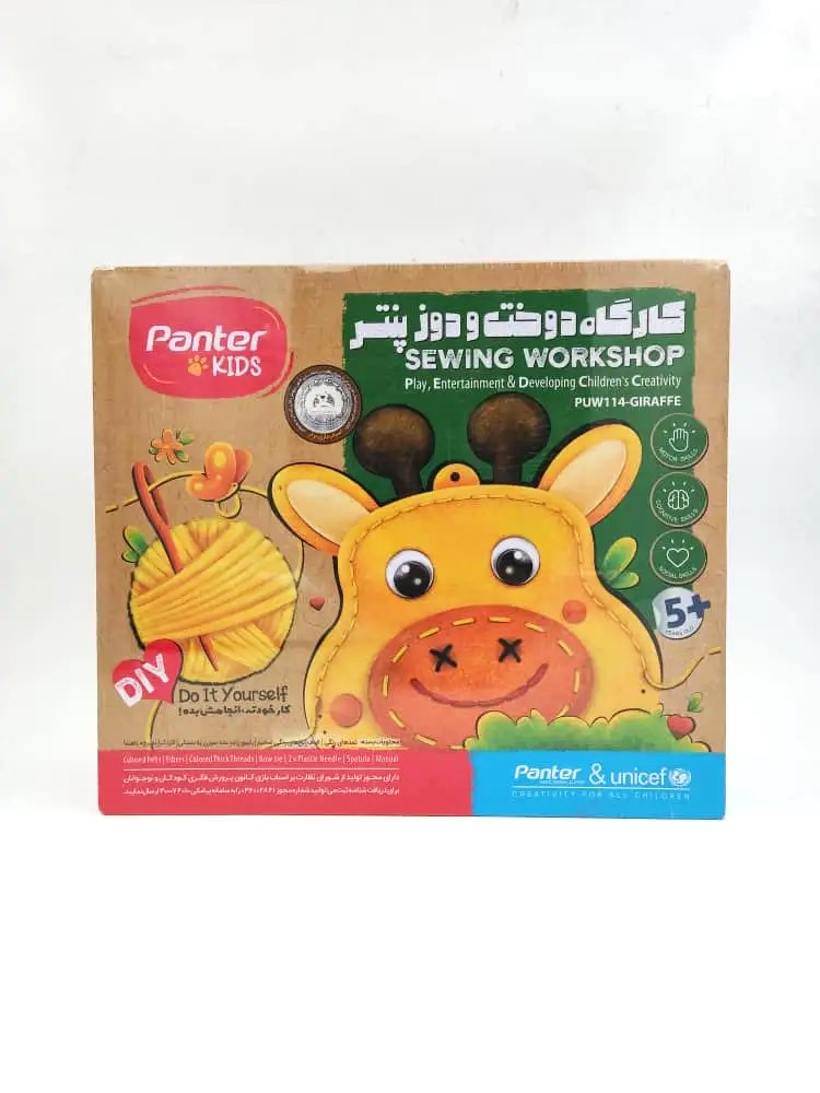 کارگاه دوختودوز پنتـر، طرح زرافه از گروه محصولات مشترک پنتـر و یونیسف با کد PUW 114 عضوی از خانواده محصولات هیجانانگیز پنتـرکیدز میباشد و ابزاری مناسب برای بازی، سرگرمی، خلاقیت و رشد و شکوفایی استعداد کودکان و نوجوانان دلبندمان محسوب میشود. این محصول با تقویت مهارتهای چندگانه حسی، حرکتی، شناختی و اجتماعی و تلفیق آنها با بازی و سرگرمی، زمینه فعالیت خستگیناپذیر در مسیر بیانتهای خلاقیت را برای کودکان و نوجوانان عزیزمان فراهم میآورد.