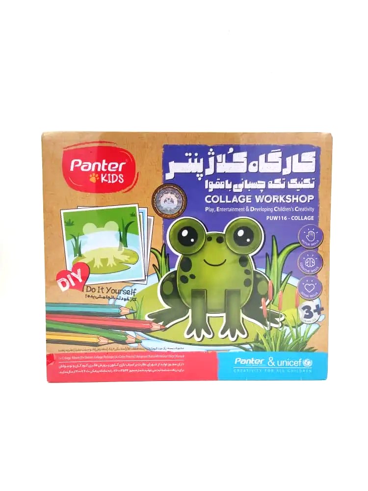کارگاه کلاژ پنتـر از گروه محصولات مشترک پنتـر و یونیسف با کد PUW 116 عضوی از خانواده محصولات هیجانانگیز پنتـرکیدز میباشد و ابزاری مناسب برای بازی، سرگرمی، خلاقیت و رشد و شکوفایی استعداد کودکان و نوجوانان دلبندمان محسوب میشود. این محصول با تقویت مهارتهای چندگانه حسی، حرکتی، شناختی و اجتماعی و تلفیق آنها با بازی و سرگرمی، زمینه فعالیت خستگیناپذیر در مسیر بیانتهای خلاقیت را برای کودکان و نوجوانان عزیزمان فراهم میآورد.