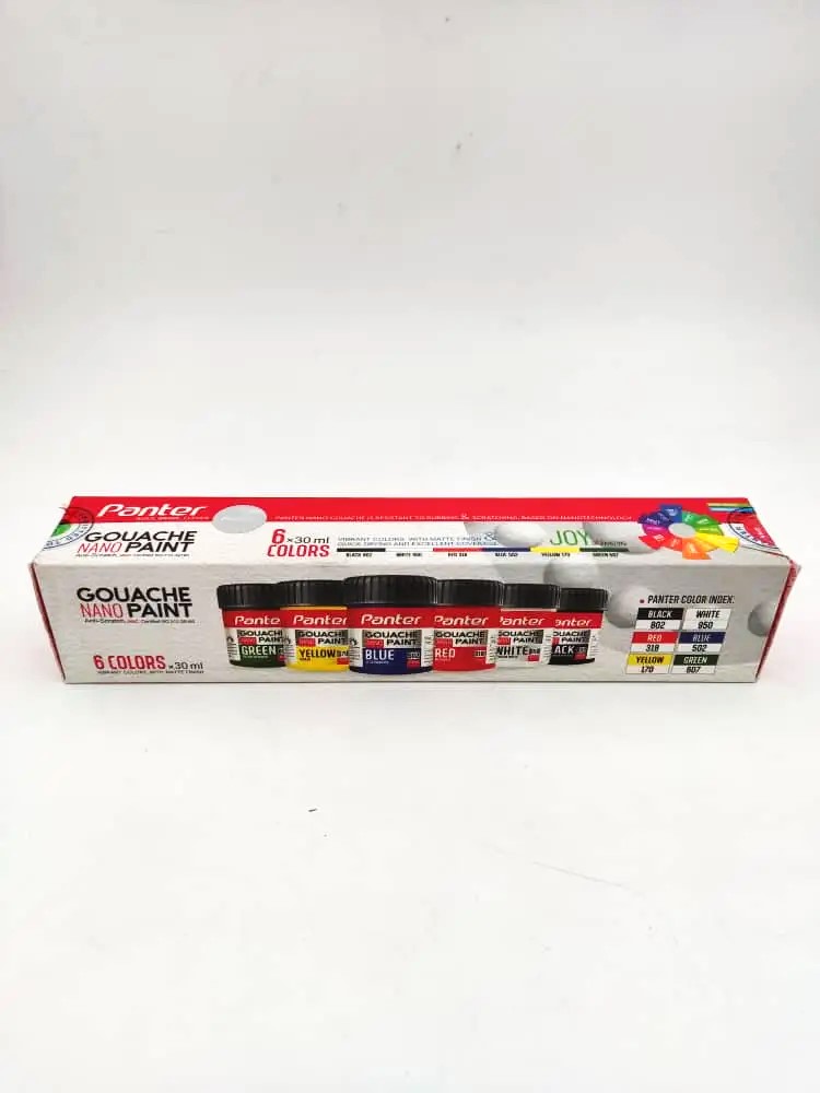 نانو پوشرنگ گواش پنتـر با بهرهگیری از مواد اولیه غیرسمی و آبپایه یا Water Base مبتنی بر فناوری نانو و با بهکارگیری تجهیزات و تکنولوژی پیشرفته اسپکتروفتومتری شیمادزو ژاپن تولید شده است و بهدلیل افزایش مقاومت در برابر سایش و خراشیدگی، ثبات و ماندگاری آثار هنری هنرمندان عزیزمان را افزایش میدهد. این محصول در بستهبندیهای جذاب 6 رنگ، 12 رنگ و تکرنگ 6 عددی با طراحی منحصربهفرد در ظروف 30 میلیلیتری بههمراه کاردک مخصوص عرضه میگردد و با قابلیت ایجاد تعامل بین حواس مختلف خصوصا حس لامسه و سایر حواس مرتبط و با قابلیت تلفیق و ترکیب رنگها، پاسخی شایسته به نیاز مصرفکنندگان ارجمند پنتـر محسوب میشود.