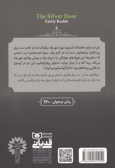 "سهگانهی سه در" سه رمان فانتزی، داستان پسری شانزدهساله به نام رای است که به دنبال دو برادر ناپدیدشدهاش پا به دنیای آنسوی سه در اسرارآمیز میگذارد.