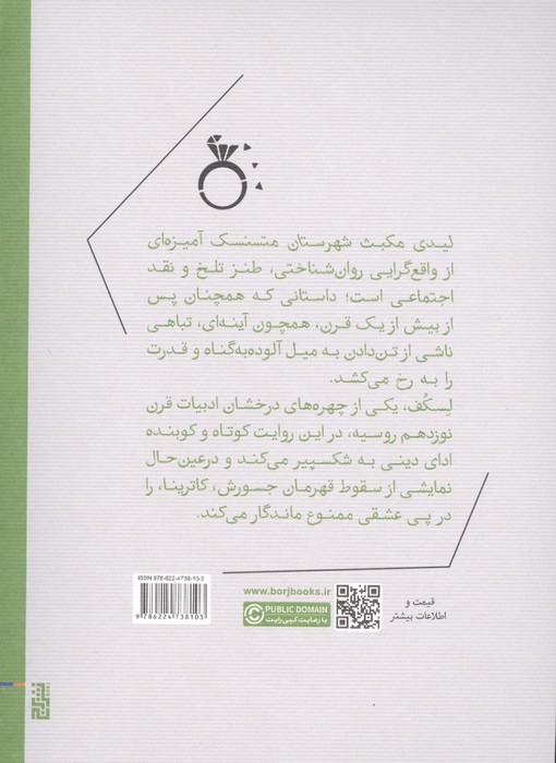 لیدی مکبث شهرستان متسنسک آمیزهای از واقعگرایی روانشناختی، طنز تلخ و نقد اجتماعی است؛ داستانی که همچنان پس از بیش از یک قرن، همچون آینهای، تباهی ناشی از تندادن به میل آلودهبهگناه و قدرت را به رخ میکشد. لسکف، یکی از چهرههای درخشان ادبیات قرن نوزدهم روسیه، در این روایت کوتاه و کوبنده ادای دینی به شکسپیر میکند و درعینحال نمایشی از سقوط قهرمان جسورش، کاترینا، را در پی عشقی ممنوع ماندگار میکند.