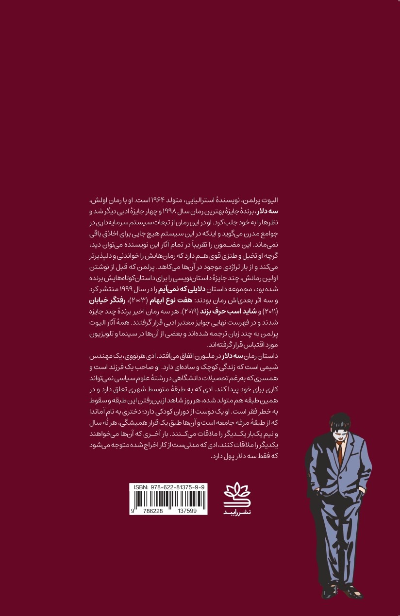 داستان رمان سه دلار در ملبورن اتفاق میافتد. ادی هرنووی، یک مهندس شیمی است که زندگی کوچک و سادهای دارد. او صاحب یک فرزند است و همسری که بهرغم تحصیلات دانشگاهی در رشتة علوم سیاسی نمیتواند کاری برای خود پیدا کند. ادی که به طبقة متوسط شهری تعلق دارد و در همین طبقه هم متولد شده، هر روز شاهد ازبینرفتن این طبقه و سقوط به خطر فقر است. او یک دوست از دوران کودکی دارد؛ دختری به نام آماندا که از طبقة مرفه جامعه است و آنها طبق یک قرار همیشگی، هر نه سال و نیم یکبار یکدیگر را ملاقات میکنند. بار آخری که آنها میخواهند یکدیگر را ملاقات کنند، ادی که مدتیست از کار اخراج شده متوجه میشود که فقط سه دلار پول دارد.