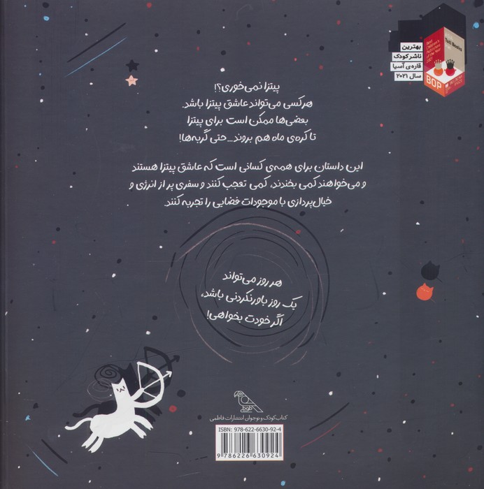 این داستان برای همهی کسانی است که عاشق پیتزا هستند و میخواهند کمی بخندند، کمی تعجب کنند و سفری پر از انرژی و خیالپردازی با موجودات فضایی را تجربه کنند.