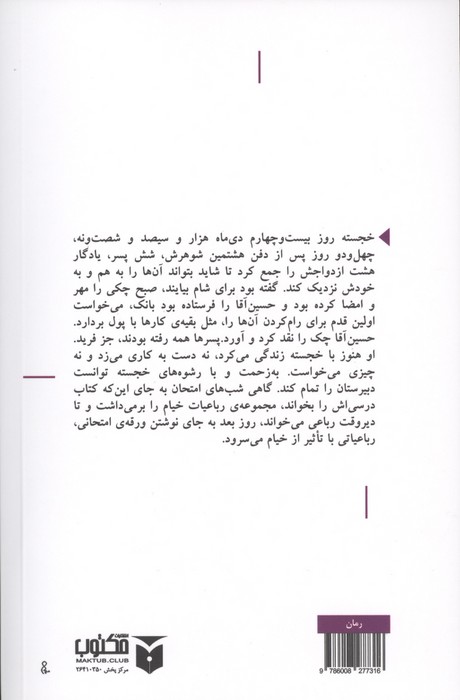 رمان حاضر ماجرای زندگی دختری است بهنام ((خجسته)) که زندگی سخت و فقیرانهای دارد .سرنوشت خجسته با آمدن ((میرزا)) به خانه آنها متحول میشود .میرزا او را برای پسرش رحمان خواستگاری میکند، اما رحمان از این موضوع ناراضی است .خانواده خجسته به علت ثروت میرزا پیشنهاد او را میپذیرند .رحمان و خجسته ازدواج میکنند، ولی پس از مدتی درمییابند که خجسته نمیتواند باردار شود .آن دو به مداوا میپردازند تا اینکه رحمان پس از افراط در مصرف دارو جان خود را از دست میدهد .خجسته پس از مرگ همسرش میخواهد به خانه پدرش بازگردد، اما میرزا مانع شده، او را برای پسر دیگرش رحیم خواستگاری میکند .رحیم که از خجسته بیزار است با اصرار پدر با او ازدواج میکند. زندگی آنها با سردی و بیمهری توام است تا اینکه نازایی خجسته دوباره مسئلهساز میشود .پس از انجام آزمایشهای مختلف دکتر علت بچهدار نشدن آنها را از جانب رحیم میداند .رحیم که همسرش را دوست ندارد از شنیدن این خبر خوشحال میشود .در پی آن، اتفاقاتی روی میدهد ک داستان بر اساس آن شکل گرفته است.