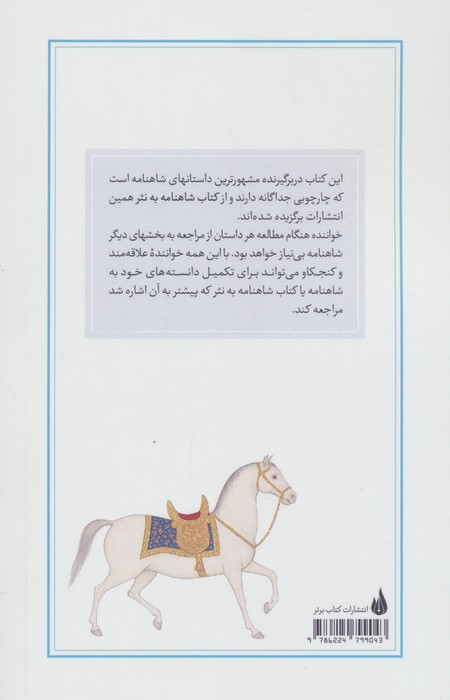 این کتاب دربرگیرنده مشهورترین داستانهای شاهنامه است. که چارچوبی جداگانه دارند و از کتاب شاهنامه به نثر همین انتشارات برگزیده شدهاند. خواننده هنگام مطالعه هر داستان از مراجعه به بخشهای دیگر شاهنامه بینیاز خواهد بود. با این همه خواننده علاقهمند و کنجکاو میتواند برای تکمیل دانستههای خود به شاهنامه یا کتاب شاهنامه به نثر که پیشتر به آن اشاره شد مراجعه کند.
