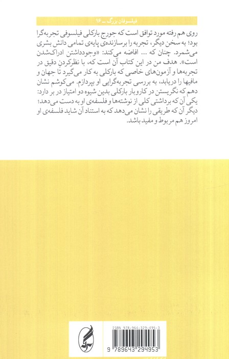 روی هم رفته مورد توافق است که جورج بارکلی فیلسوفی تجربهگرا بود؛ به سخن دیگر تجربه را بر سازندهی پایهی تمامی دانش بشری میشمرد. چنان که.... افاضه میکند وجود داشتن ادراک شدن است. هدف من در این کتاب آن است که با نظر کردن دقیق در تجربهها و آزمونهای خاصی که بارکلی به کار میگیرد تا جهان و مافیها را دریابد، به بررسی تجربه گرایی او بپردازم میکوشم نشان دهم که نگریستن در کاروبار بارکلی بدین شیوه دو امتیاز در بر دارد یکی آن که برداشتی کلی از نوشتهها و فلسفهی او به دست میدهد؛ دیگر آن که طریقی را نشان میدهد که به استناد آن شاید فلسفهی او امروز هم مربوط و مفید باشد.