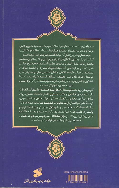 سیره اهل‌بیت عصمت (علیهم‌السلام) سرچشمه معارف الهی و کامل‌ترین و بارزترین مصداق ارشاد و هدایت است؛ لذا مطالعه و آشنایی با سیره عملی و تاریخ زندگی آن ذوات قدسی ضرورتی بس مهم است. کتاب شریف «منتهی الآمال فی ذکر تواریخ النبی و الآل»، اثر برجسته و ماندگار عالم جلیل القدر و محدث عظیم الشأن مرحوم شیخ عباس قمی، امت را بر آبشخور آب حیات نبوت محوری و امامت سالاری نشانده، با حیات طیبه ملکوتی ایشان آشنا می­‌سازد و منتهای آمال دوستان دوده طه و یس (علیهم‌السلام) است؛ ولی ادبیات نسبتا سنگین و گاهی پیچیده این کتاب شریف، بهره‌­­مندی از آن را برای نسل امروز تاحدی دشوار کرده است. اکنون آنچه پیش روی شما دوستداران اهل‌بیت عصمت (علیهم‌السلام) قرار دارد، بازنویسی جامعی از کتاب «منتهی الآمال» است؛ شامل: روان­سازی عبارات، تحقیق، تکمیل مصادر، اعراب متون و اشعار عربی، ترجمۀ متون و اشعار، ارائه عناوین و فهرست مناسب، تهیه نمودار تبارنامه­‌ها؛ که با قلم مهر و شیفتگی و در نهایت امانت‌داری و پاسداری علمی، طی 7 سال متمادی نگاشته شده و زمینۀ مطالعه و انس بیشتر با این کتاب را برای مشتاقان سیره و سریره ذوات مقدس معصومان (علیهم‌السلام) فراهم نموده است.