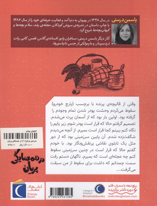 وقتی از قالیچهی پرنده با برچشب (پارچ خودرو) سقوط میکردم وحشت پودر شدن تمام وجودم را گرفته بود. اولین بار بود که از آسمان پرت میشدم. تصمیم گرفتم حالا که قرار است پودر شوم، زیر پایم را نگاه کنم ببینم کجا قرار است بمیرم. از آنچه میدیدم شگفت زده شدم. آن پایین سرزمینی بود که از دور مثل یک تابلوی نقاشی پر نقشونگار بود...