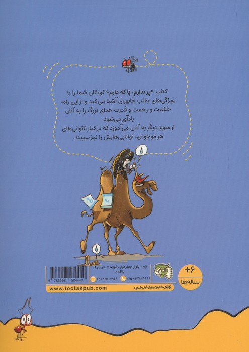 کتاب «پر ندارم، پا که دارم» کودکان شما را با ویژگی‌های جالب جانوران آشنا می‌کند و از این راه حکمت و رحمت و قدرت خدای بزرگ را به آنان یادآور می‌شود. از سوی دیگر به آنان می‌آموزد که در کنار ناتوانی‌های هر موجودی، توانایی‌هاش هر موجودی، توانایی‌هاش را نیز ببیند.