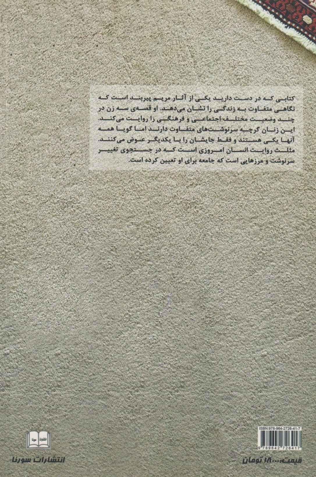 کتابی که در دست دارید یکی از آثار مریم پیربند است که نگاهی متفاوت به زندگی را نشان میدهد. او قصه سه زن در چند وضعیت مختلف اجتماعی و فرهنگی را روایت میکند. این زنان گرچه سرنوشتهای متفاوت دارند اما گویا همه آنها یکی هستند و فقط جایشان را با یکدیگر عوض میکنند. مثلث روایت انسان امروزی است که در جسنجوی تغییر سرنوشت و مرزهایی است که جامعه برای او تعیین کرده است.