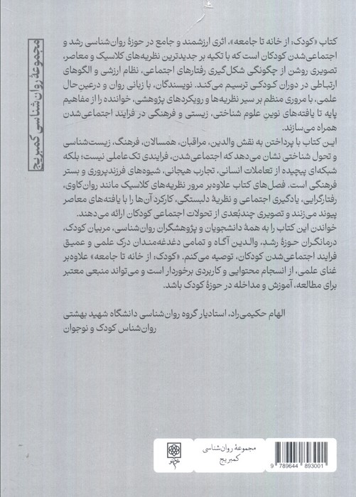 کتاب «کودک، از خانه تا جامعه» اثری ارزشمند و جامع در حوزه روانشناسی رشد و اجتماعی شدن کودکان است که با تکیه بر جدیدتریت نظریههای کلاسیک و معاصر، تصویری روشن از چگونگی شکلگیری رفتارهای اجتماعی، نظام ارزشی و الگوهای ارتباطی در دوران کودکی ترسیم میکند.