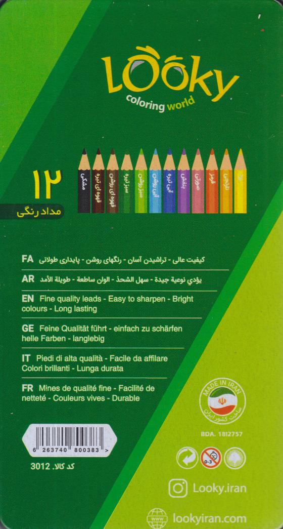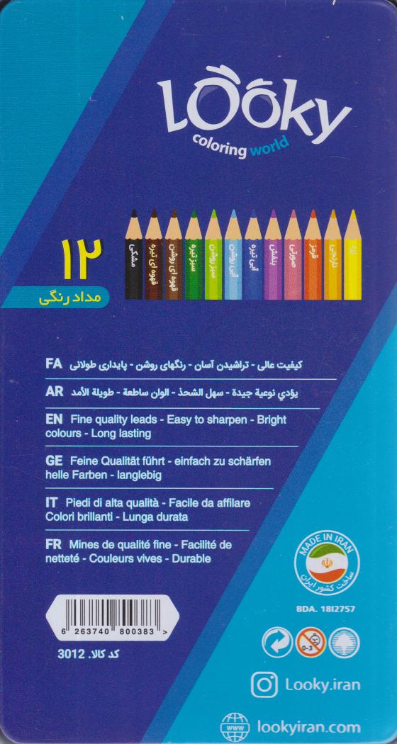 مداد رنگی 12 رنگ جعبه فلزی (لوکی) - سبز