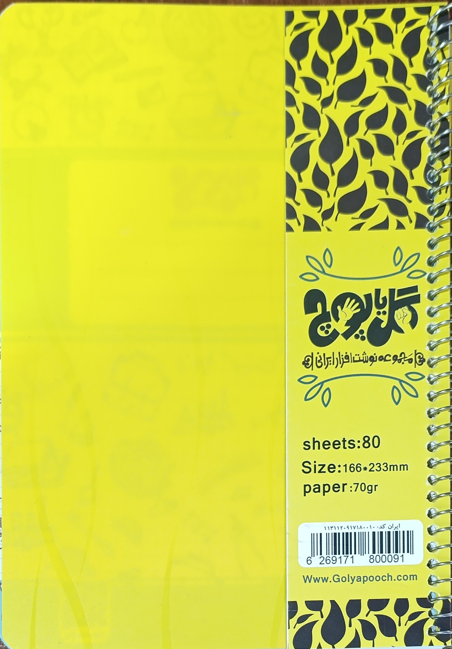دفتر ۸۰ برگ خطدار فنری طلقی (گل یا پوچ) - زرد
