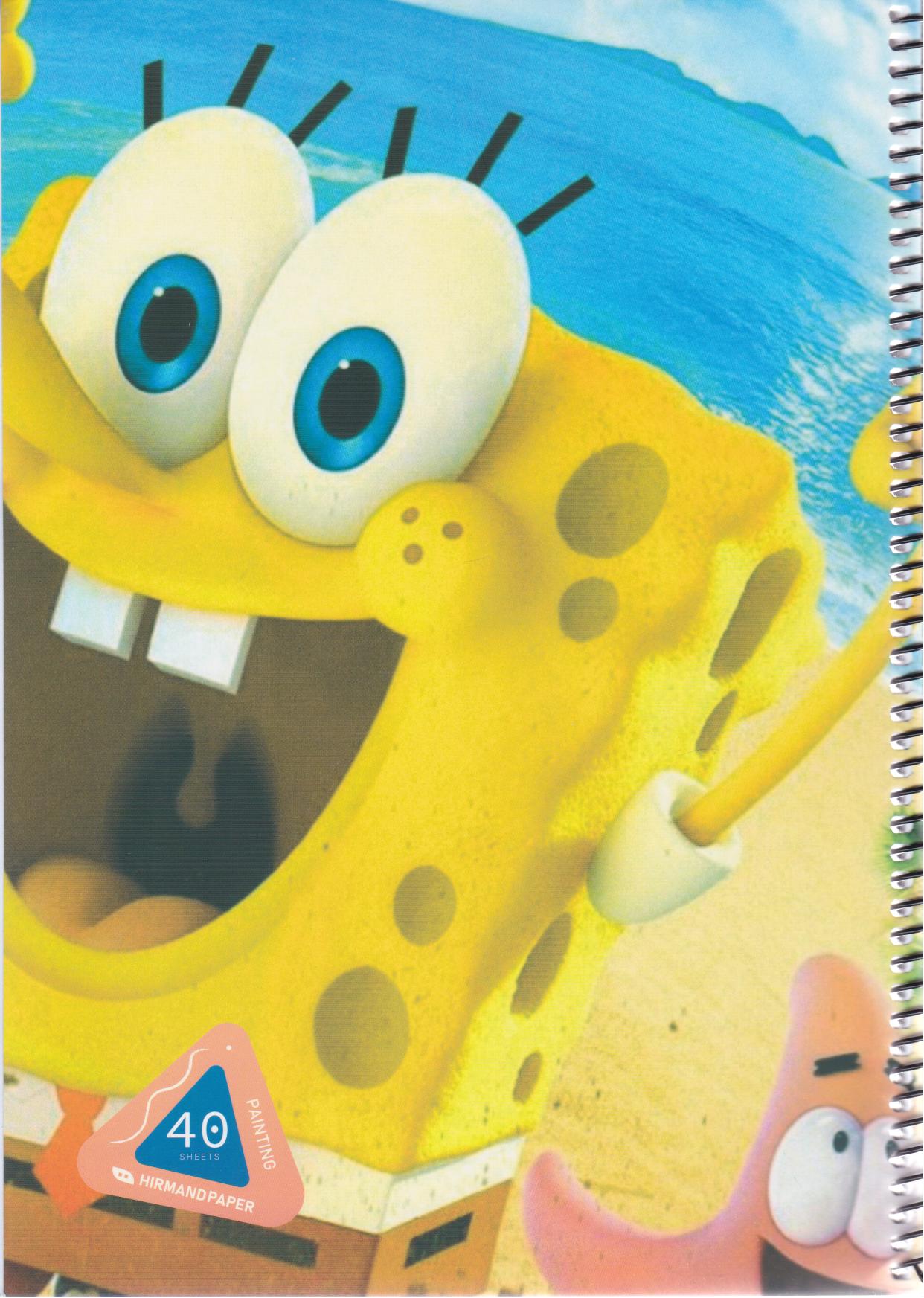 دفتر نقاشی 40 برگ رحلی کارتونی سیم از بغل (هیرمند) - باباسفنجی