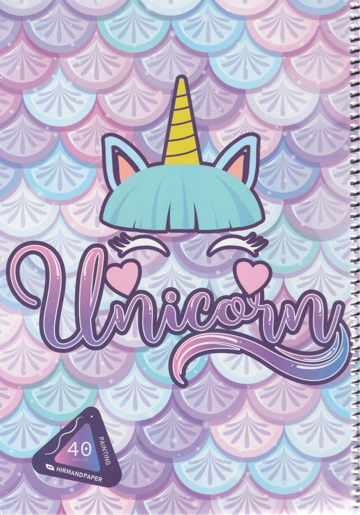 دفتر نقاشی 40 برگ رحلی کارتونی سیم از بغل (هیرمند) - یونیکورن